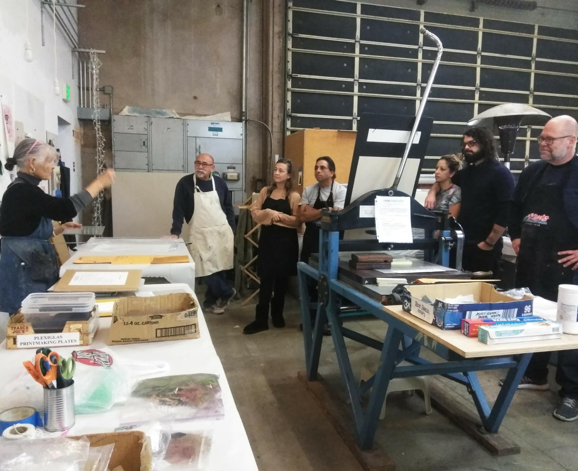 Myrtle Press Printmaking Studio is located within Verge Center for the Arts studio Project. Myrtle Press was created by four printmakers looking for a place to print and a way to keep printmaking alive in Sacramento. Through workshops, classes, visiting artists and community events, Myrtle Press provides opportunities for the community to learn and explore printmaking. They offer membership to artists and others interested in a collaborative printmaking work space. Relief, intaglio, monotype, stone lithography and solar plate printing are accessible through their facilities. Classes at Myrtle Press are taught in partnership with Verge Center for the Arts Education program and can be found in our website under the “Classes” tab.