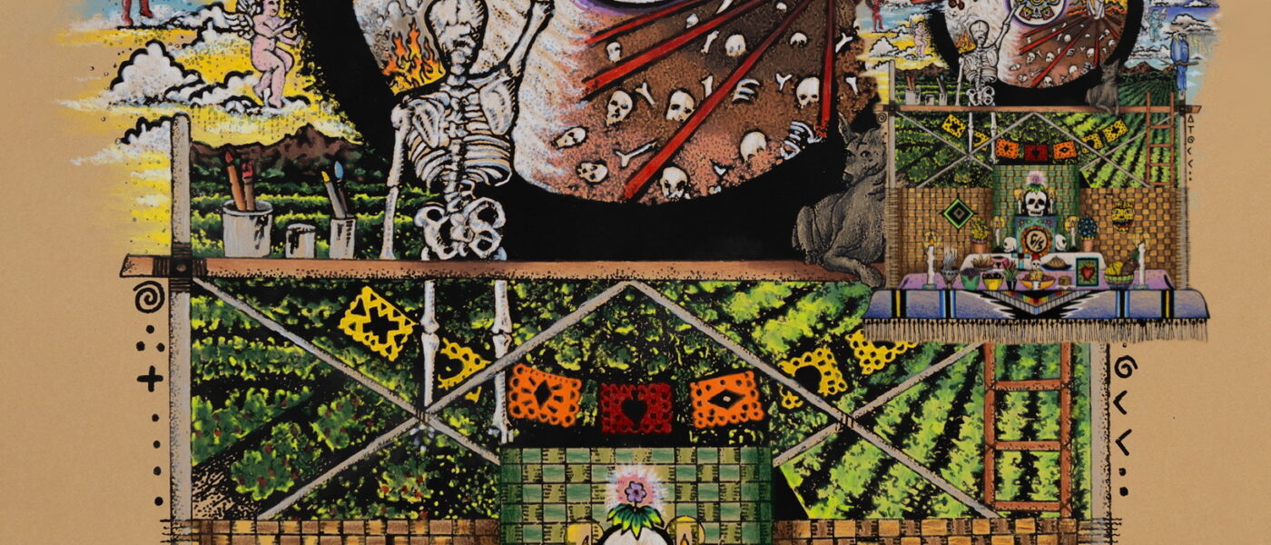 In the exhibition “R.C.A.F. in Mid-Flight: The Artwork and Influence of the Royal Chicano Air Force” we celebrate the groundbreaking contributions of the Royal Chicano Air Force, a collective of visionary artists who, since their inception in the early 1970s, have profoundly shaped the landscape of Chicana/o art and culture. The RCAF took flight as a vibrant force, using their creative talents to challenge societal injustices, promote Chicano cultural pride, and advocate for their community. Their innovative approach to art—blending visual media, performance, humor, and activism—transcended traditional boundaries and ignited a movement that continues to inspire artists today.